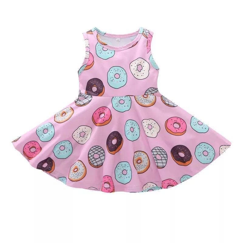 Adorable pink skater dress with a delicious-enough-to-eat donut print!