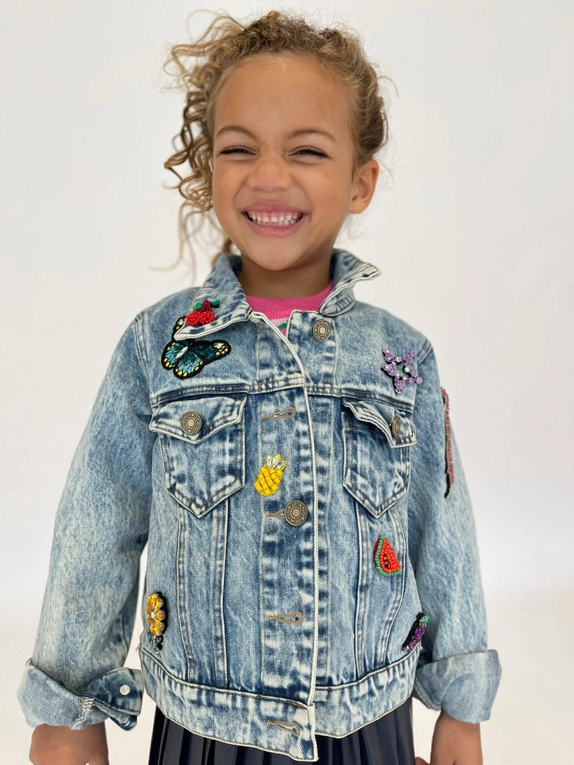 The beaded fruit appliquΓ© is the cutest on this cropped denim.