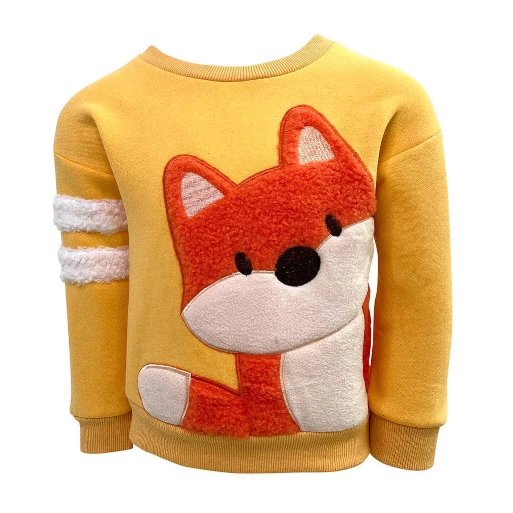The cutest fuzzy fox crew neck sweatshirt with white fuzzy arm bands!