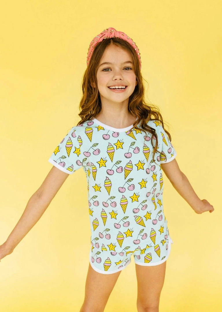 Sweet-looking pastel matching set designed with cones, stars, and cherries.