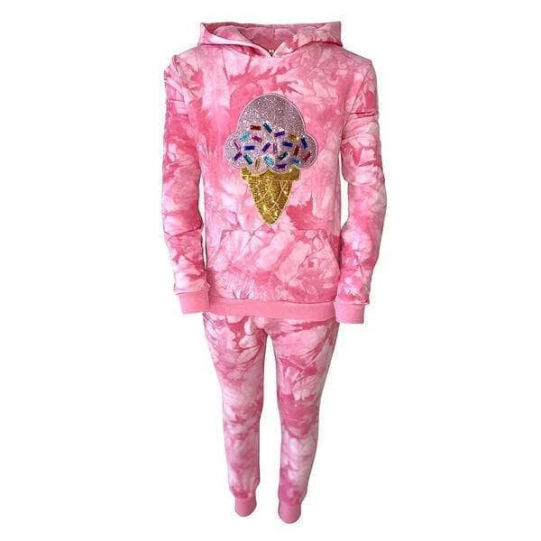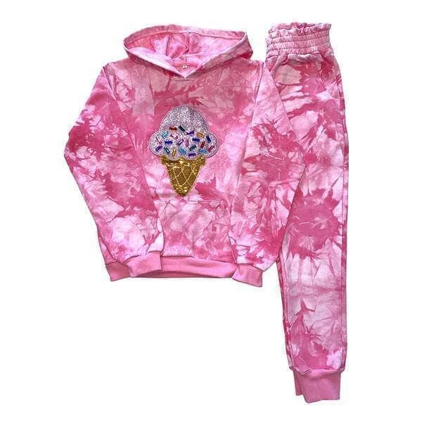 Hot pink tie dye jogger set with jeweled ice cream cone!