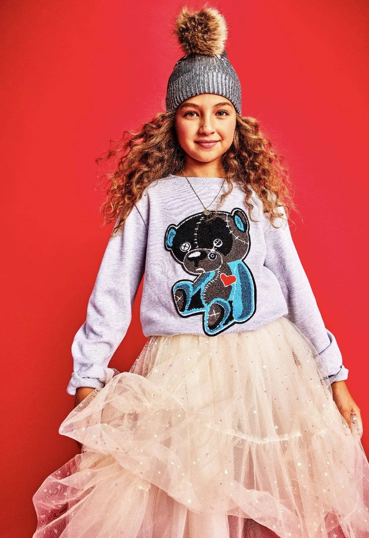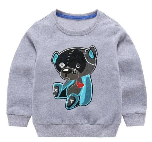 Grey crewneck sweatshirt with stitched up teddy bear patch!Β